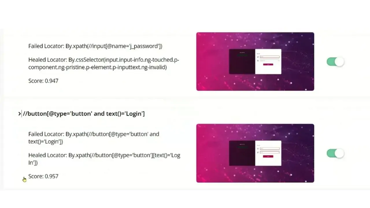 With self-healing, tests continue to execute even when UI elements change or break. This reduces maintenance effort and prevents non-product-related failures during the test pipeline.