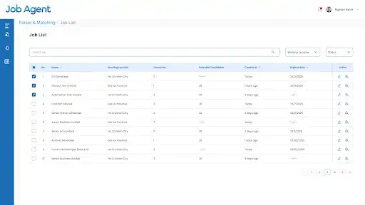 - View all active job openings with key details including position name, working location, number of vacancies, and potential candidate count.