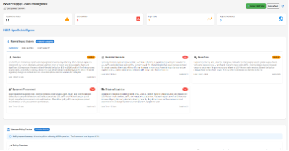 The Supply Chain module provides end-to-end visibility into logistics conditions, freight indicators, and potential disruptions across global supply networks. By correlating supply chain signals with geopolitical and market data, the system identifies vulnerabilities that may affect supplier reliability and operational continuity.