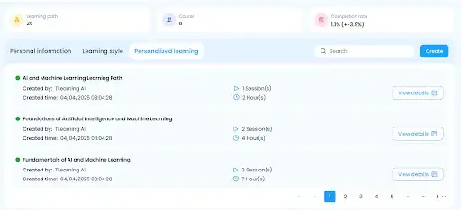 Recommend tailored learning paths based on skill levels, experience, progress, and goals.